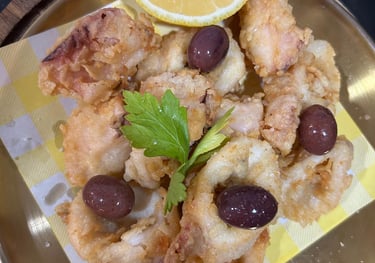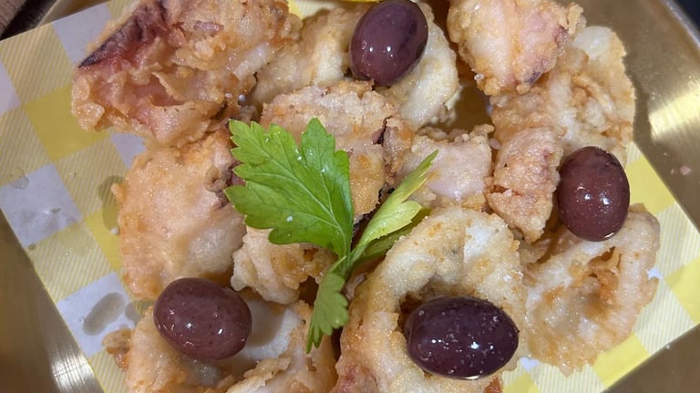 ปลาหมึกสดทอด / มะนาว / มะกอก