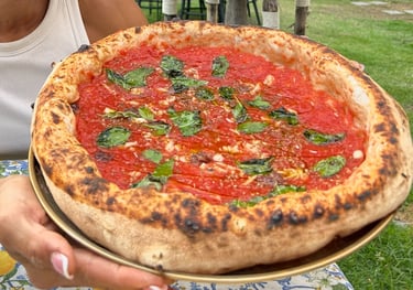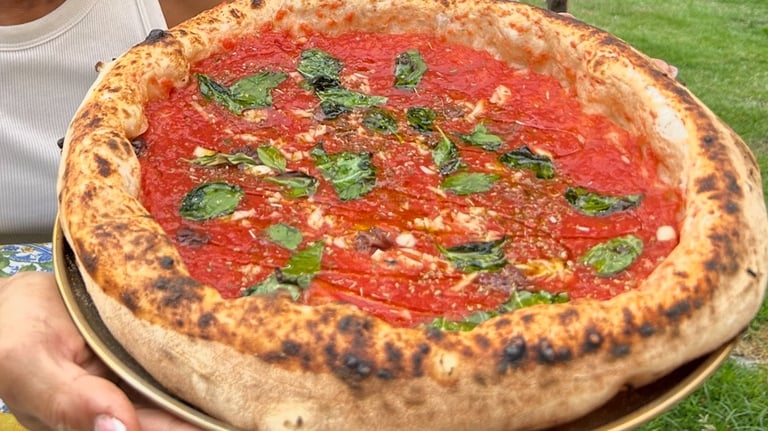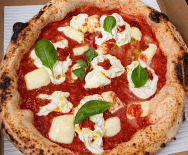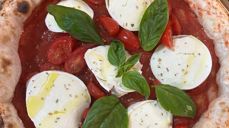 Tomato sauce / Mozzarella di Agerola / Italian basil / parmesan (Fiordilatte Mozzarella as original recipe)